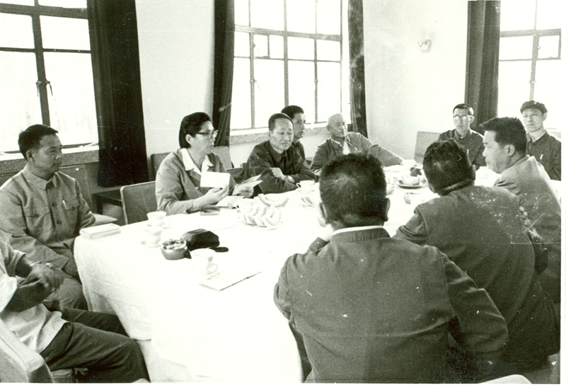 1982年9月13日,國(guó)務(wù)委員、對(duì)外貿(mào)易部部長(zhǎng)陳慕華視察酒鋼。