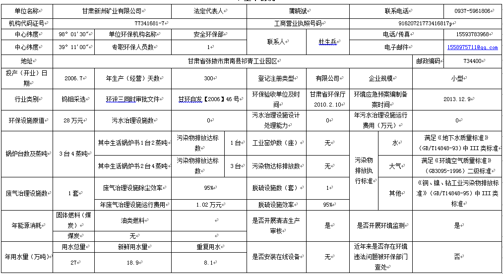 | 尾礦 | 27萬噸/年 | 無 | 5000噸 | 5000噸 | 26.5萬噸 | 0 | 230萬噸 | 0 | |||||||