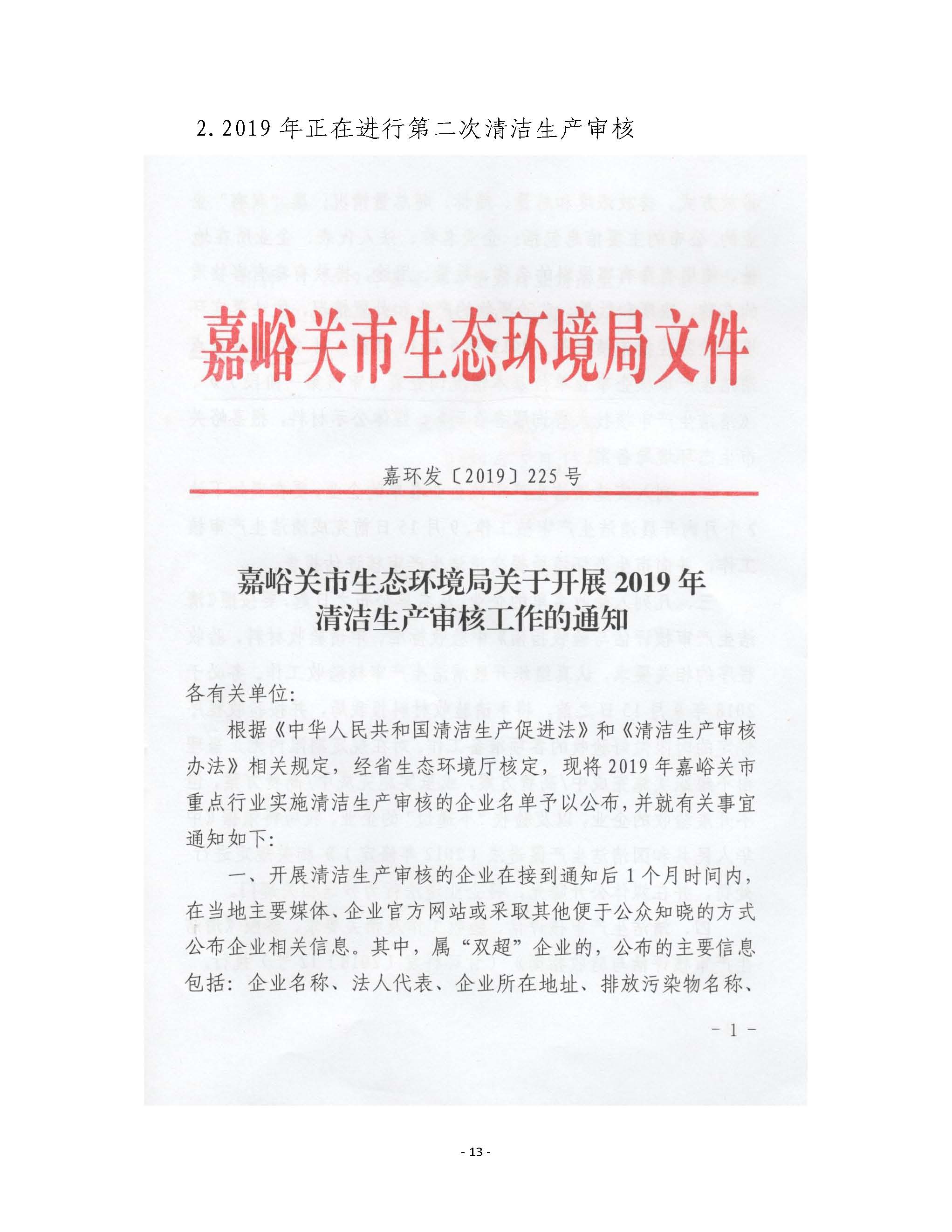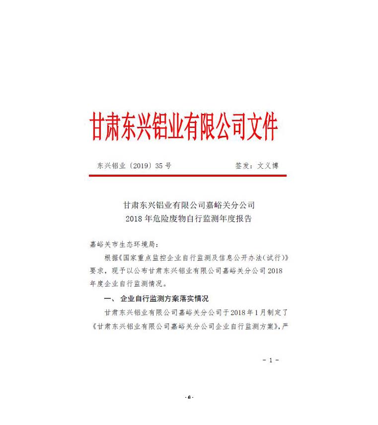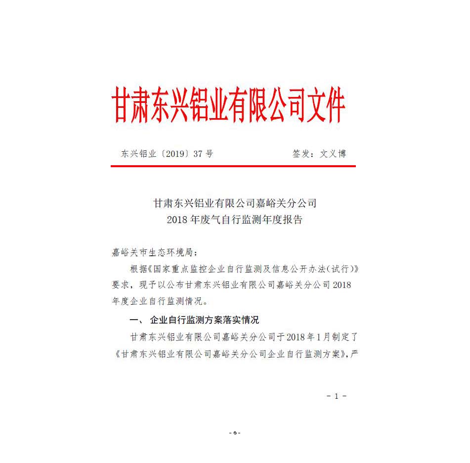 甘肅東興鋁業(yè)有限公司嘉峪關(guān)分公司2019年度環(huán)境信息公開(kāi)