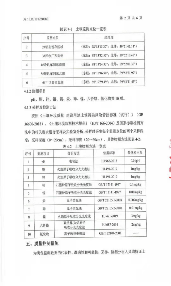 甘肅酒鋼天成彩鋁有限責(zé)任公司 土壤環(huán)境重點(diǎn)監(jiān)管企業(yè)自行監(jiān)測(cè)信息公開表