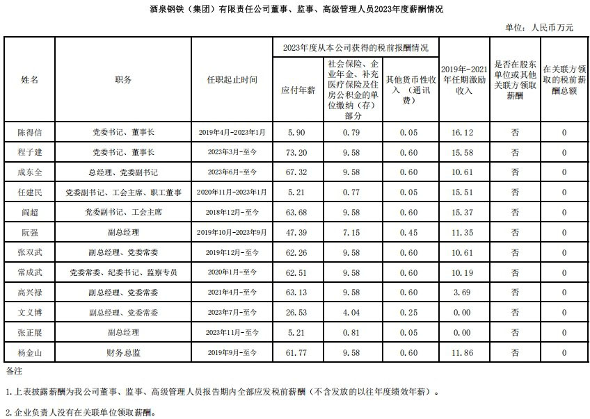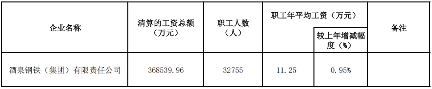 酒泉鋼鐵(集團)有限責(zé)任公司2023年工資分配信息披露
