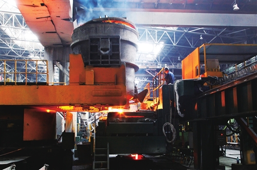去年以來,宏興股份公司煉軋廠連鑄作業(yè)區(qū)大力開展科技攻關(guān)、崗位創(chuàng)新,在生產(chǎn)作業(yè)中實行“窄溫度、窄拉速”精細(xì)化控制,實現(xiàn)全年“零故障、零事故”目標(biāo)。圖為該作業(yè)區(qū)1號連鑄機(jī)生產(chǎn)現(xiàn)場。 肖世強(qiáng)攝