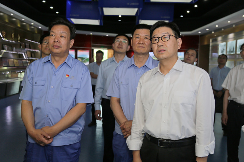 張錦剛一行先后來到酒鋼展覽館,宏興股份不銹鋼分公司、選礦廠、煉鐵廠,宏晟電熱公司,東興鋁業(yè)公司,實地了解酒鋼建設(shè)發(fā)展歷史、產(chǎn)能規(guī)模、產(chǎn)業(yè)布局、產(chǎn)品研發(fā)、市場銷量、技術(shù)創(chuàng)新、項目建設(shè)、能源結(jié)構(gòu)優(yōu)化等工作開展情況,聽取酒鋼工作匯報。